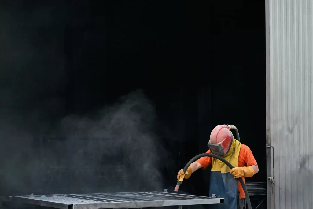 - Surface Preparation: Deep cleaning and blasting the steel (sandblasting or high-pressure wash) to remove rust, old paint and oil. This “prep” step ensures the new coating sticks properly.